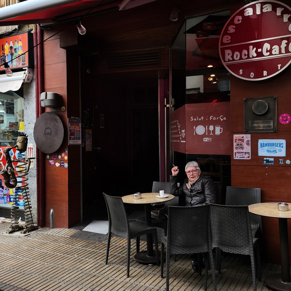 La música suena constantemente en el Escalarre a un volumen que no impide conversar. Durante todo el día conversan, en las mesas de la terraza y el local, gente de todas las edades. ¿Cómo consigue un ambiente tan aparentemente concebido para jóvenes muy jóvenes atraer a lugareños y forasteros, jóvenes y viejos por igual? Atribuyo el fenómeno a cierto tipo de magia que Alex asigna a la música y que yo asigno a la empatía. Un día llegué al Escalarre con la mente cargada de problemas y el alma soportando ese peso con dolor. Alex pasó por mi mesa, se detuvo a saludar y algo percibiría en mi expresión.